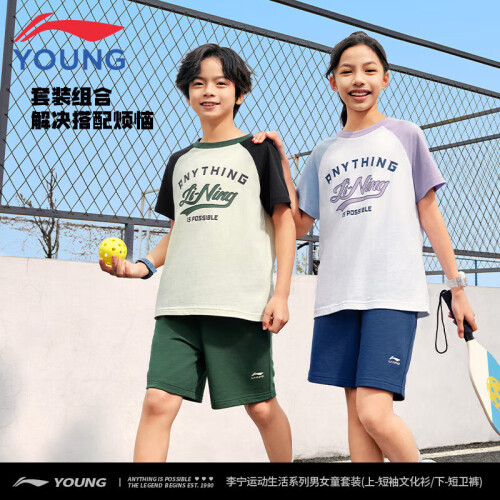 李宁童装儿童运动套装男女小大童吸汗透气短袖短裤套装160YWBU049-4