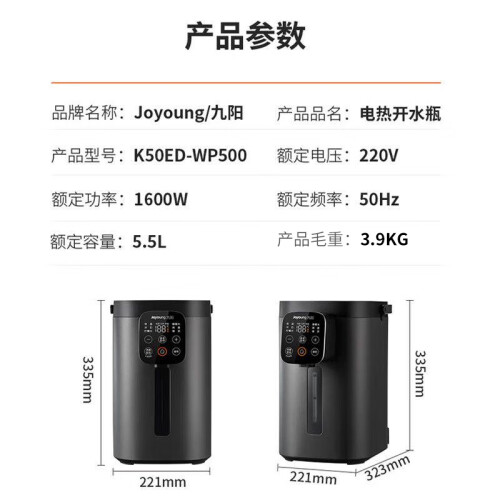 九阳(Joyoung)电热水瓶热水壶304不锈钢内胆0胶水柔性出水技术无级调温 恒温水瓶 K50ED-WP500