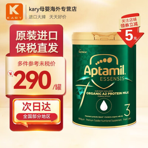 爱他美黑钻奇迹白罐蓝罐绿罐ESSENSIS澳洲有机A2蛋白婴幼儿配方奶粉900g 3段(12个月以上)效期至26-05