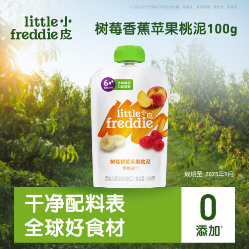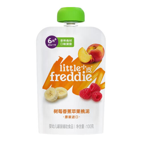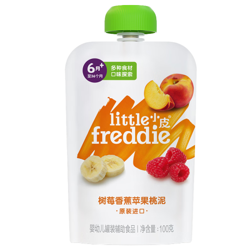 小皮(Little Freddie)【效期至25年9月】树莓香蕉桃泥100g 宝宝辅食泥 婴儿水果泥