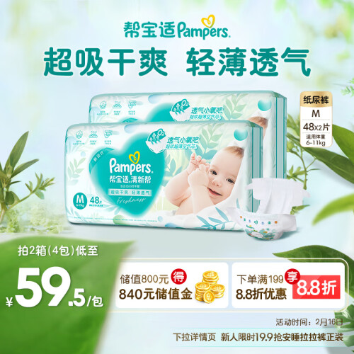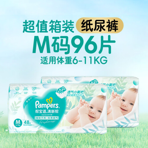 帮宝适【品牌直供 安心品质】清新帮纸尿裤M96片 中码尿裤尿不湿