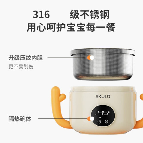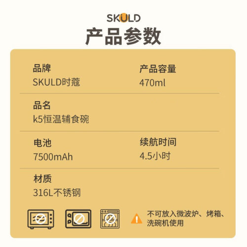 SKULD儿童餐具智能K5辅食碗保温碗免注水恒温碗316L不锈钢宝宝碗