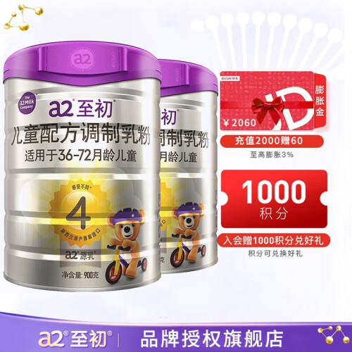 至初(A2)a2至初奶粉4段奶粉 儿童配方调制乳粉 3-6岁适用 850g*2罐【新升级】