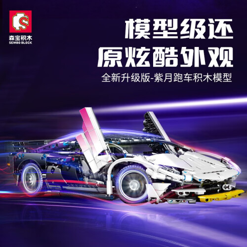 森宝积木积械狂飙1:14赛车成人高难度拼装遥控仿真跑车儿童节日礼物摆件 1:14紫月跑车(静态)701945