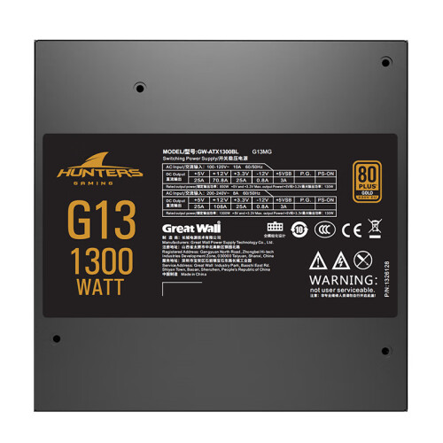 长城(Great Wall)额定1300W G13金牌全模组电源(ATX3.1标准/原生PCIe5.1接口/自动启停/全电压/单路12V/5090)