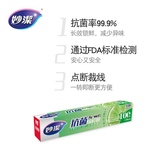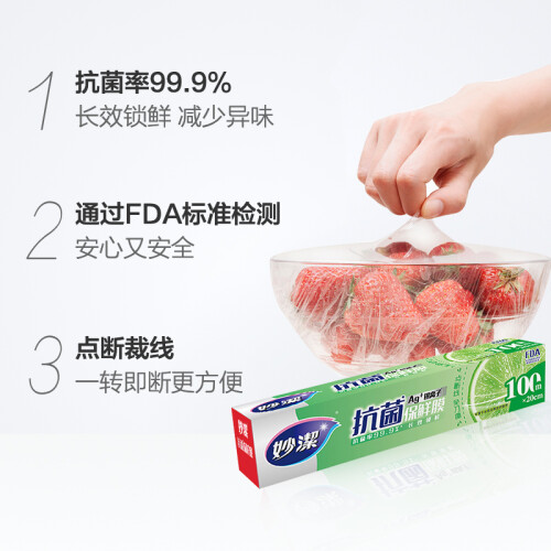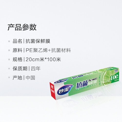 妙洁 免刀撕保鲜膜盒装小号20cm*100米 点断易撕微波炉适用