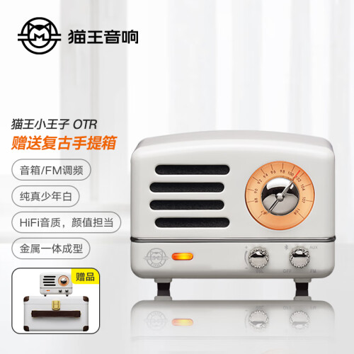 猫王收音机猫王音响 猫王小王子OTR无线便携式蓝牙音箱可爱复古小音响收音机 纯真白
