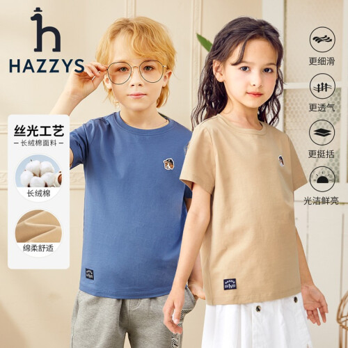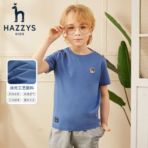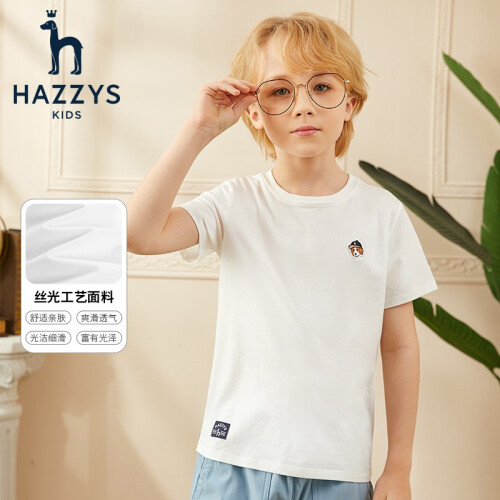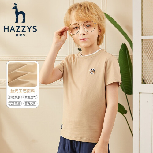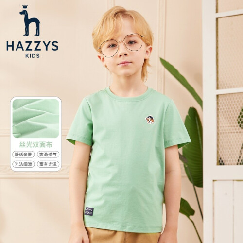 哈吉斯(HAZZYS)童装男女童T恤夏新品弹力舒适时尚短袖圆领衫 松叶绿 155