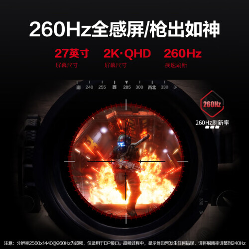 AOC 27英寸2K 240Hz超频260Hz 满血10Bit FastIPS低蓝光HDR400 大乌兹G-sync 游戏电脑显示器Q27G3Z/D