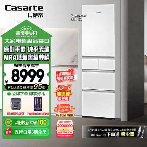 卡萨帝(Casarte)冰箱386升多门双变温箱设计 原创平嵌MRA低氧窖藏养鲜 自由拼装家用收纳电冰箱双系统 国家补贴20% BCD-386WLCMDM4W1U1单台