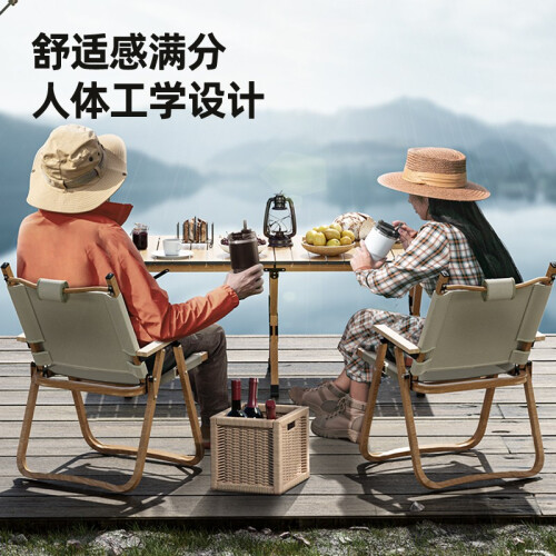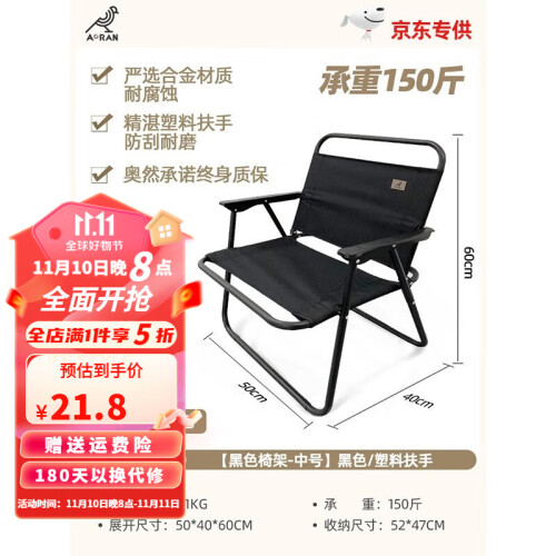 奥然 户外折叠椅克米特椅露营椅子户外椅子折叠便携露营椅沙滩椅 黑色架塑料扶手-经典款