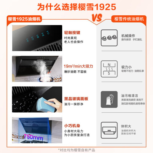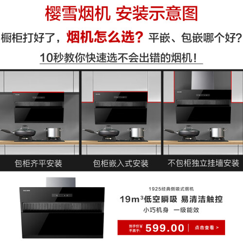 樱雪(INSE)侧吸家用抽油烟机 20立方大吸力 自清洁一级能效 挥手智联厨房脱排国家补贴吸油烟机C2319(B)W