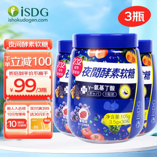 ISDG 232种植物果蔬酵素 夜间酵素软糖 酵素断卡快燃孝素改善小肚子 【推荐】夜间酵素30粒*3瓶共90粒