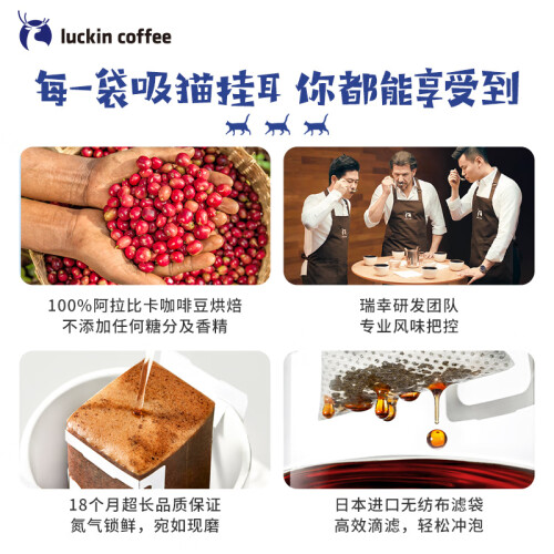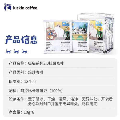 瑞幸咖啡吸猫系列挂耳咖啡 混合装10g*6袋 现磨手冲滤泡挂耳黑咖啡粉