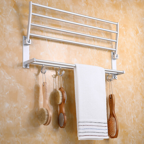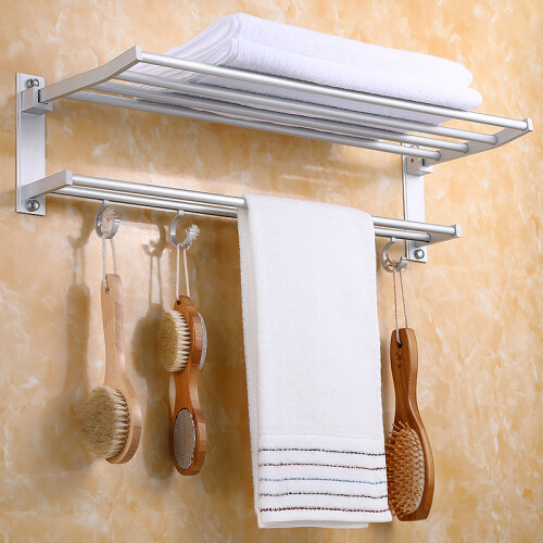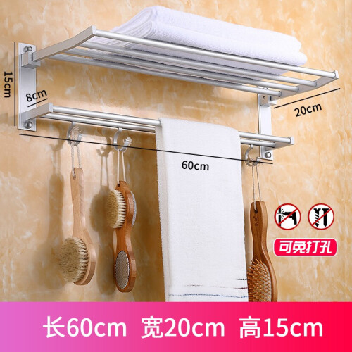 静闲居浴室置物架太空铝毛巾架免打孔卫生间置物架毛巾挂架淋浴室浴巾架 免打孔毛巾架(90°可折叠)