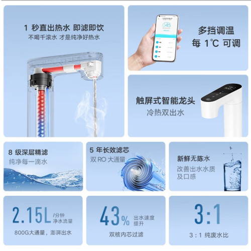 小米即热净水器Q800 厨下式直饮机加热净水器 无罐直饮 1键速热 大流量 精准选温 APP智联MR863R 小米即热净水器Q800