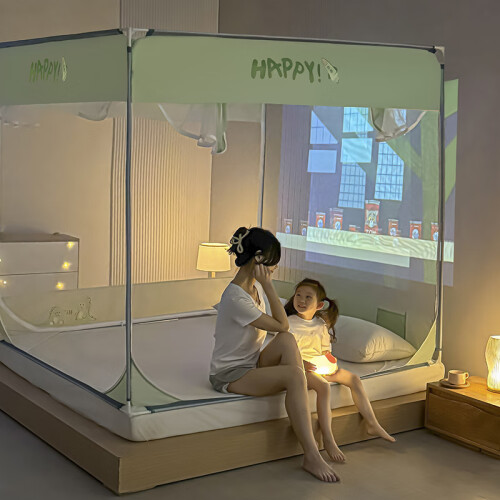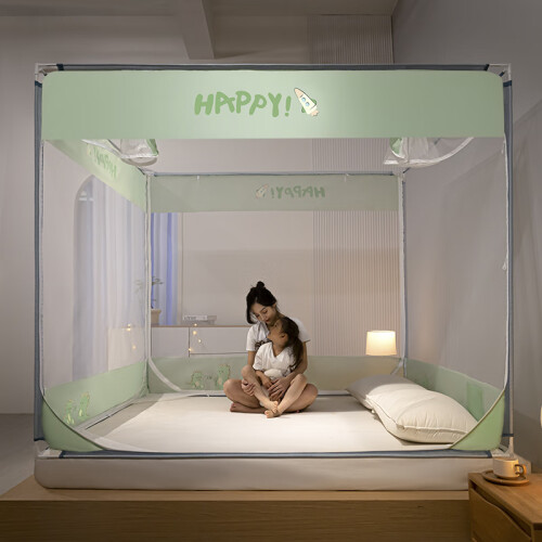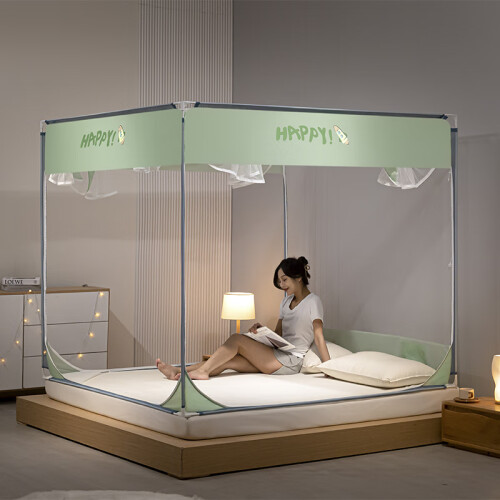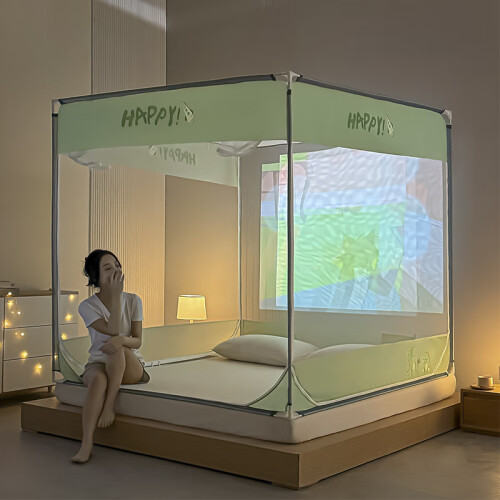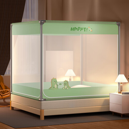 轩蓝仕床笠款全包防摔落坐床式拉链蚊帐 不锈钢烤漆支架帐子 花朵喵喵-zb 床笠款150×200×高170组装支架