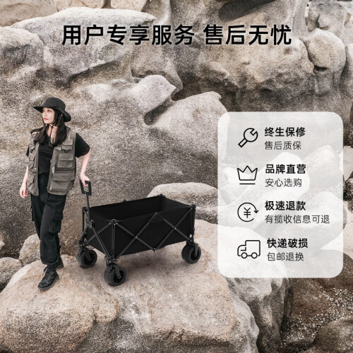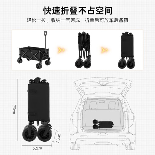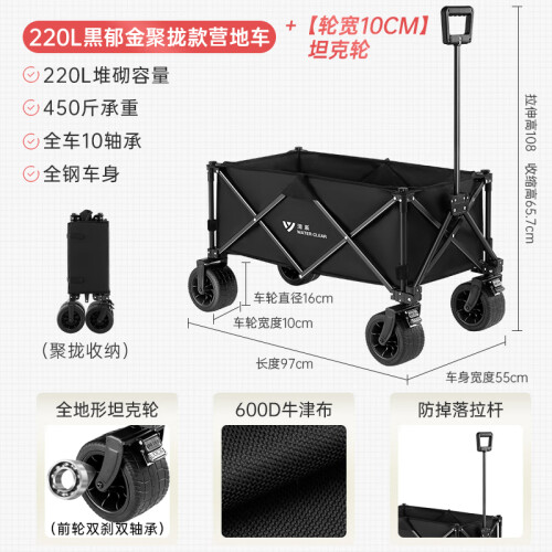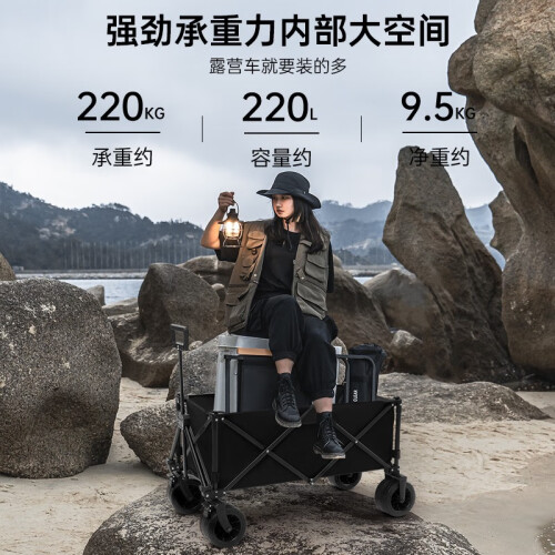 清系露营车户外推车野营车营地车露营推车折叠野餐车手拉便携买菜车 220L黑郁金聚拢款