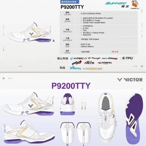 威克多VICTOR胜利羽毛球鞋9200TTY戴资颖TTY戴资颖专款防滑 P9200TTY-A 珠光白 43