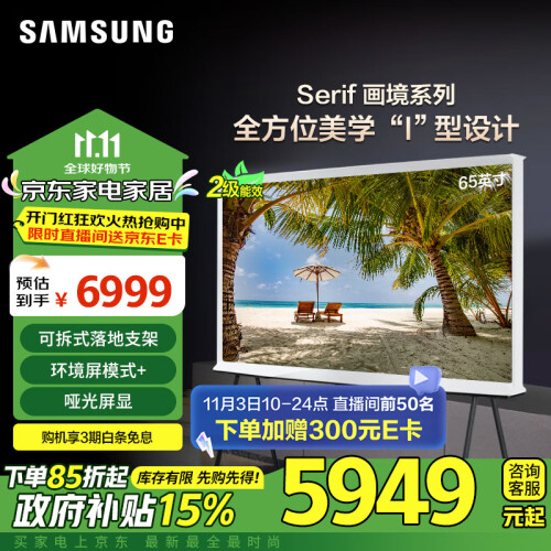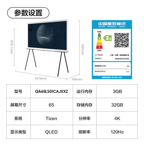 三星(SAMSUNG)65LS01C 65英寸 Serif画境艺术电视 超薄 哑光屏显 量子点 QA65LS01CAJXXZ 以旧换新补贴
