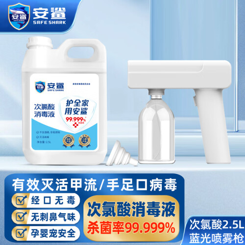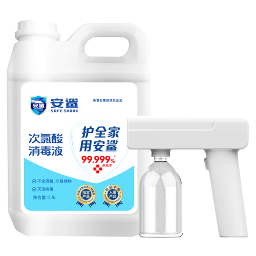 安鲨次氯酸消毒液 次氯酸消毒片泡腾片 家用含氯流感预防消毒水 次氯酸消毒片100片+喷壶