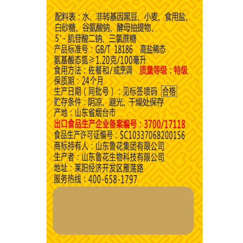 鲁花全黑豆味极鲜系列 酱香酱油【0添加防腐剂 特级生抽】1.98L调味品