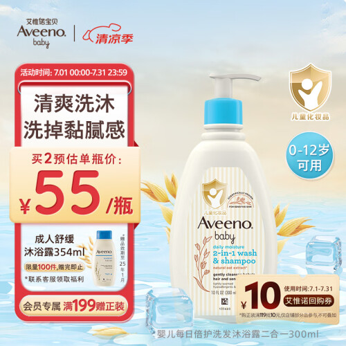 艾惟诺(Aveeno)艾维诺儿童沐浴露洗发水二合一婴儿洗发水宝宝沐浴乳燕麦300ml
