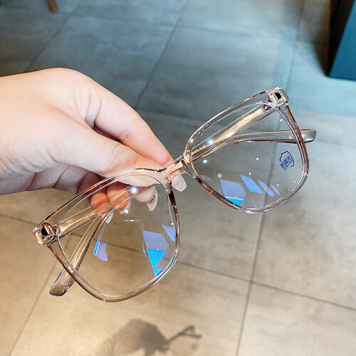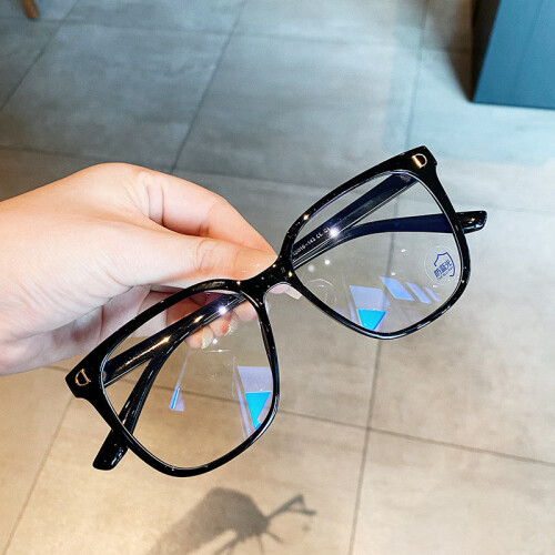 月亮米钉D家TR90防蓝光眼镜 创意款大框眼镜架网红素颜平光镜可配近视散光防蓝光 砂黑 161非球面镜片(留言度数)