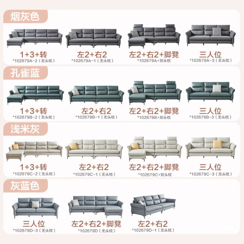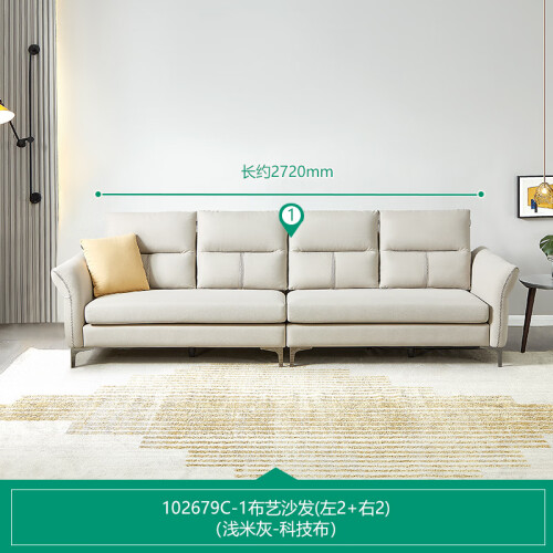 全友家居布艺沙发现代简约可调节扶手乳胶座包客厅家具布沙发 【浅米灰】(左2+右2)