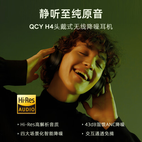 QCY H4 主动降噪-43dB头戴蓝牙耳机重低音无线耳麦手机听力超长待机适用于全手机 白色