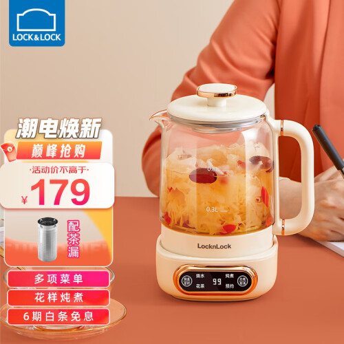 乐扣乐扣 养生壶EJK3925 办公室煮茶器 家用玻璃养生杯烧水壶 多功能电水壶电热水壶煮茶壶 800ML-白色(含茶漏) 0.8L