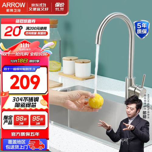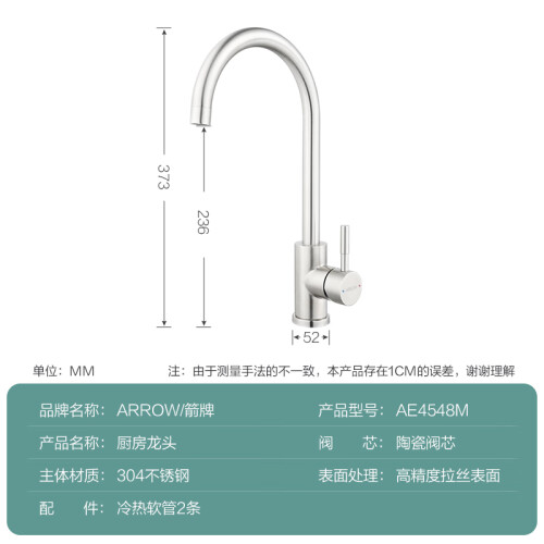 箭牌(ARROW)不锈钢龙头 厨房水龙头 卫浴洗菜盆冷热水龙头可旋转水槽龙头 不锈钢|广角设计 AE4548M