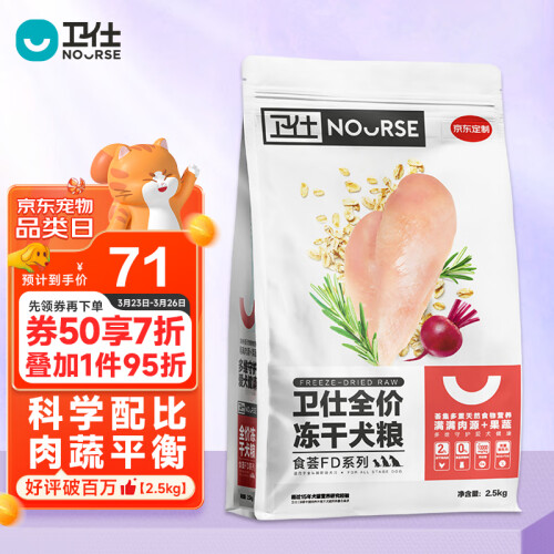 卫仕食荟冻干犬粮 狗干粮 幼成犬通用全价狗粮 2.5kg【原料透明】