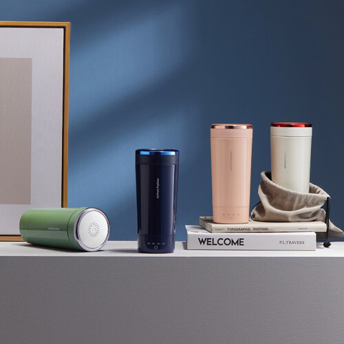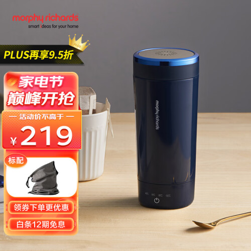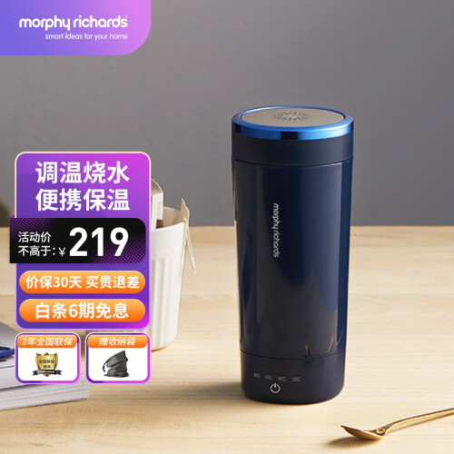 摩飞电器(Morphyrichards) 电热水壶烧水杯便携式烧水壶旅行家用保温电随行热水杯316不锈钢烧水杯办公室养生保温杯MR6060 0.3L 轻奢蓝
