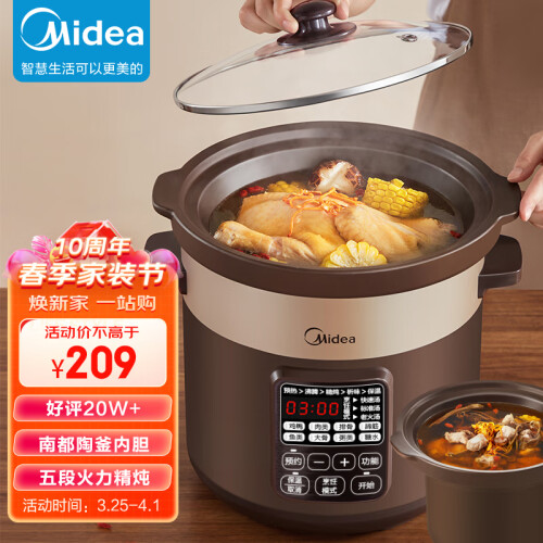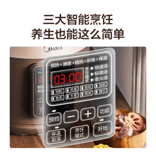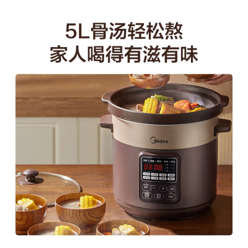 美的(Midea)电炖锅电砂锅 电煮锅炖汤盅煲汤锅紫砂锅5L可定时一体多功能锅电热锅 国家补贴 DG50Easy201