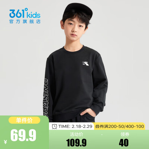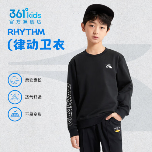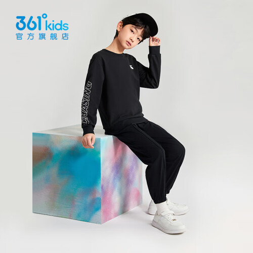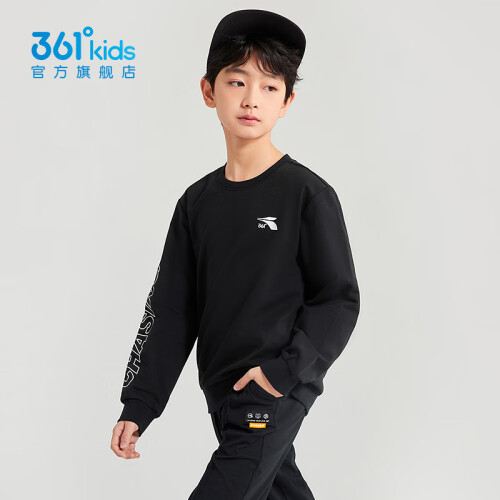 361°童装男童套头卫衣年春季新款休闲女童卫衣大童百搭基础上衣 经典黑 160 cm
