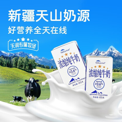 天润(TERUN)天润125浓缩纯牛奶整箱125g*20盒新疆乳制品儿童早餐学生奶常温奶