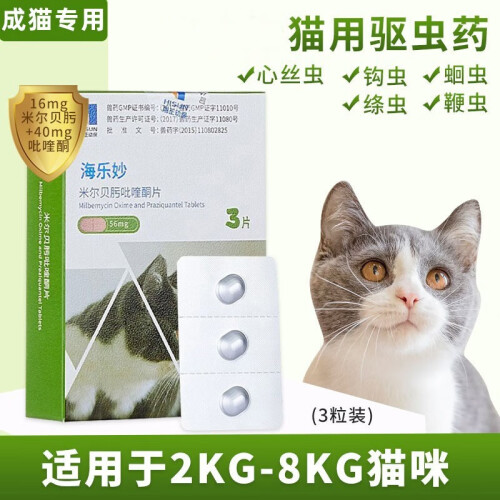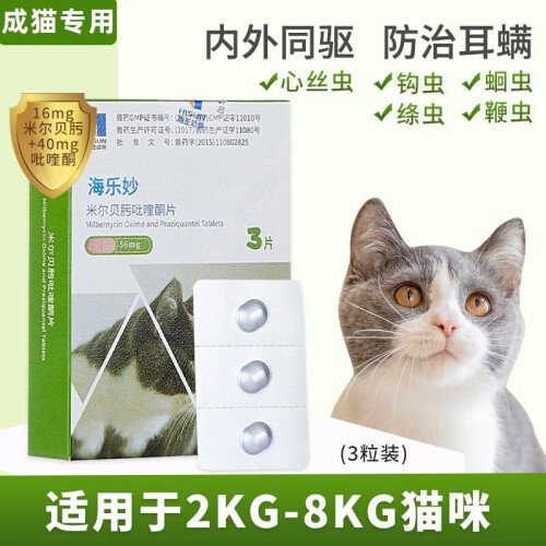 海乐妙猫咪驱虫药体内外一体同驱滴剂宠物成幼猫去除耳螨虱子跳蚤绦虫蛔虫打虫药猫咪体内外驱虫药大宠爱套装 海乐妙56mg-3粒盒装(体重>2kg成猫)