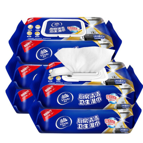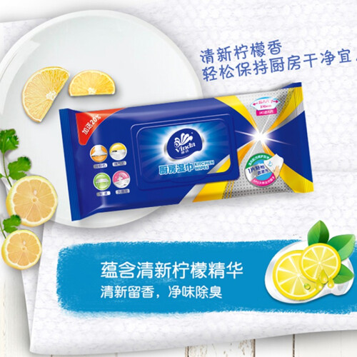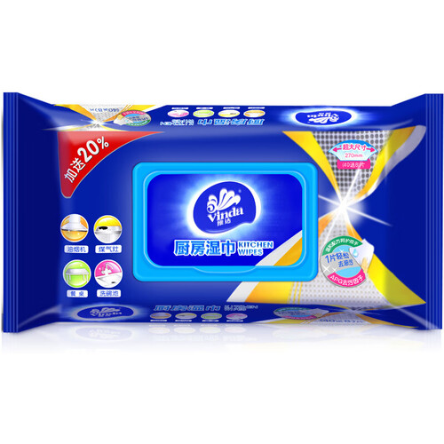 维达(Vinda) 厨房专用湿纸巾大包装油烟机灶台去油去污清洁带盖抽取式家庭装 1层 60张*1包 60片*2包