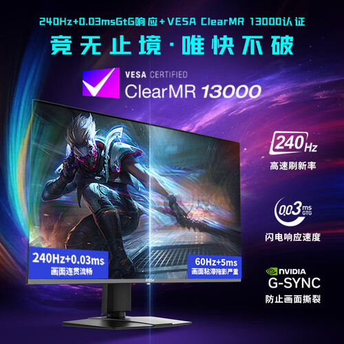 微星(MSI)27英寸4K240Hz OLED显示器 旋转升降 游戏电竞电脑显示屏 TYPE-C接口MAG 272UP QD-OLED X24流光