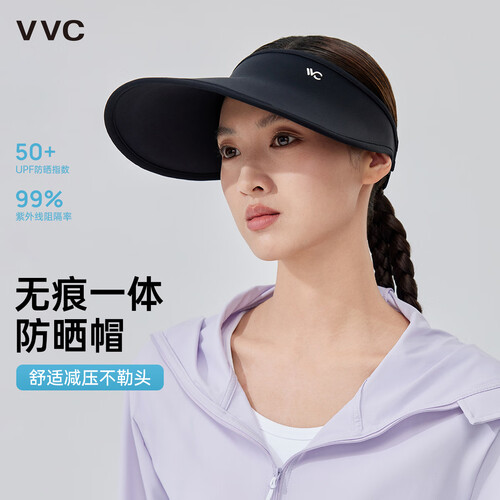 VVC成毅同款防晒帽女夏防紫外线遮阳帽无痕帽户外骑行男女同款太阳帽 曜石黑