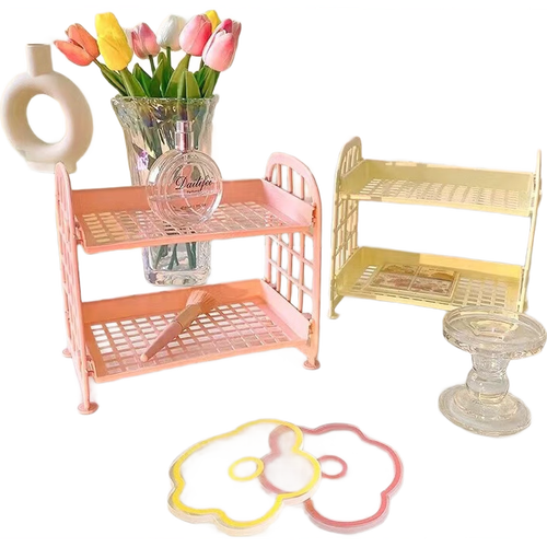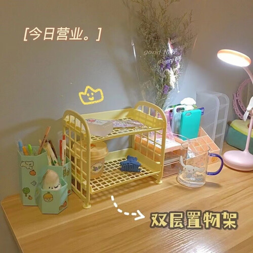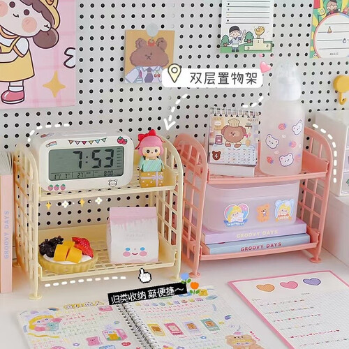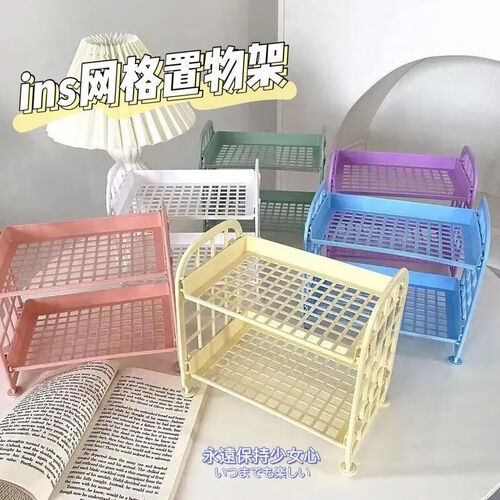 日系桌面双层收纳架学生宿舍化妆品置物架办公室桌上多层整理架子 随机颜色两个 无规格