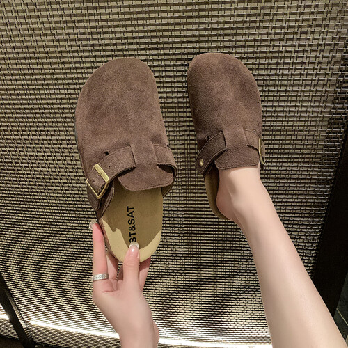 星期六【复古勃肯鞋】厚底增高保暖2024秋冬新款百搭舒适防滑勃肯棉拖 咖啡色 35