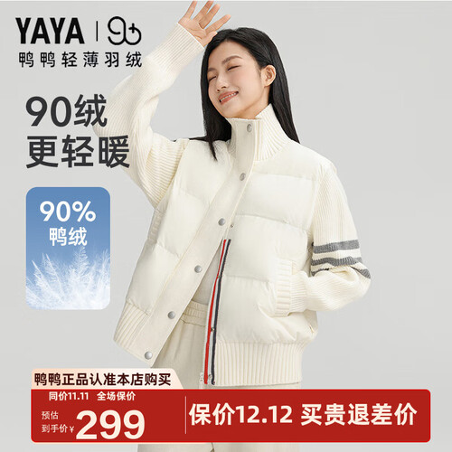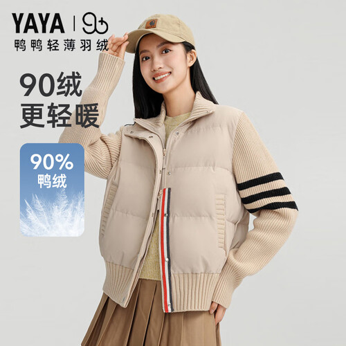 鸭鸭(YAYA)【90+系列】零压轻暖羽绒服女士2025秋冬新款短款立领休闲外套XB 米色 S
