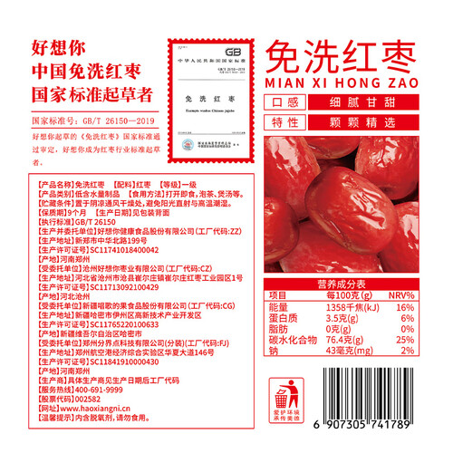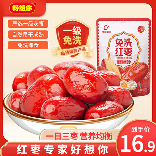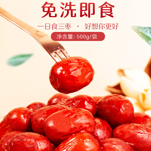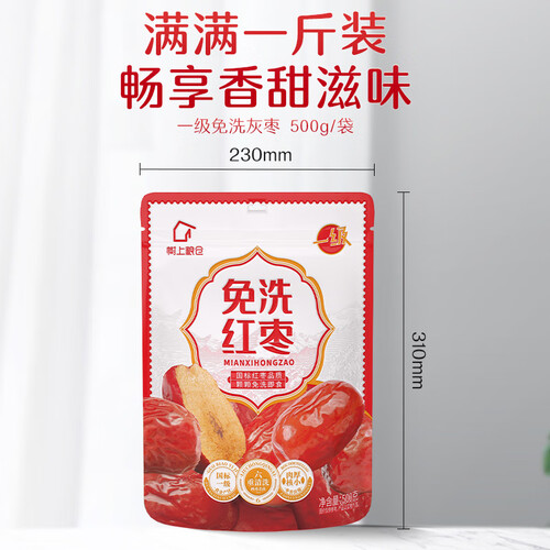 - 好想你_树上粮仓 免洗红枣新疆大红枣 即食大枣泡茶煮煲粥零食特产果干 一级免洗红枣500g