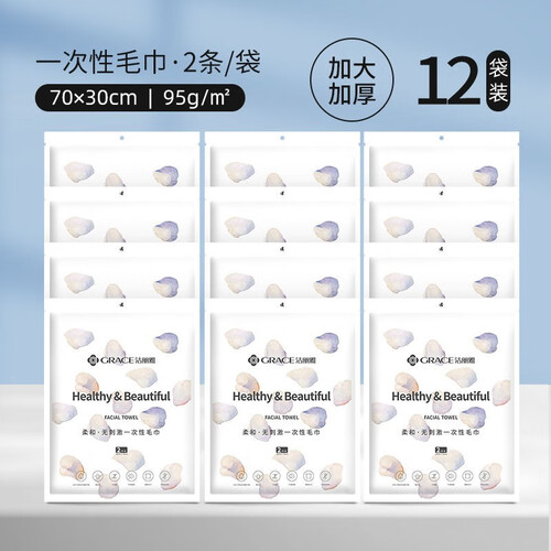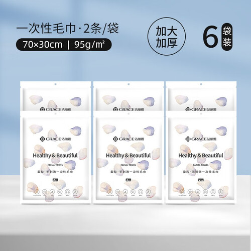 - 洁丽雅(grace)洁丽雅一次性毛巾浴巾独立包装加厚酒店旅行装便携洗澡巾 毛巾四包【两条装/包】