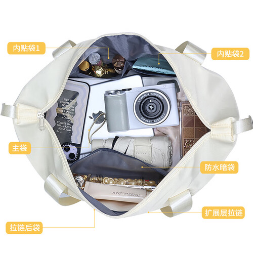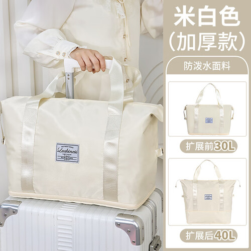 - 安尼咔咔(anniekk)出差收纳旅行包男女短途行李包手提大容量收纳包折叠轻便旅游包袋 香槟白可扩展