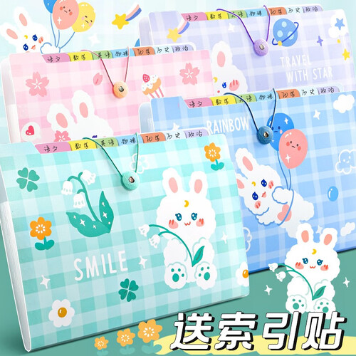 西语(XIYU) A4风琴包大容量试卷收纳袋多层插页科目分类试卷资料收纳卷子整理可爱少女心文件资料夹 蓝色晴空兔-8格
