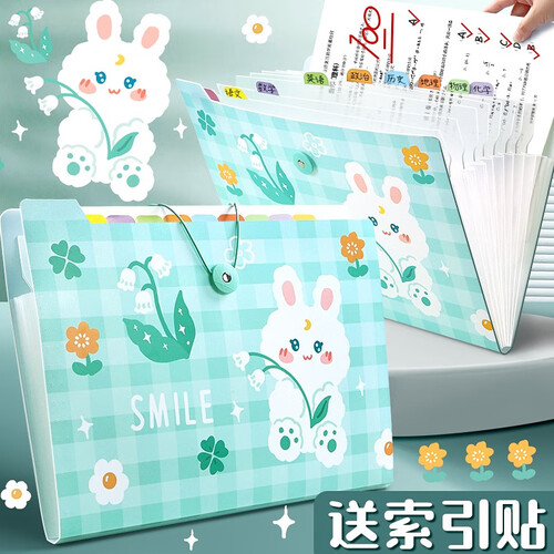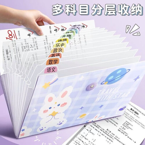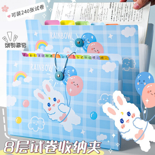 - 西语(XIYU) A4风琴包大容量试卷收纳袋多层插页科目分类试卷资料收纳卷子整理可爱少女心文件资料夹 蓝色晴空兔-8格
