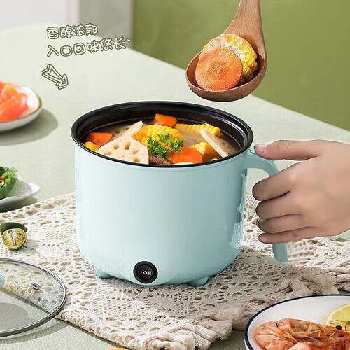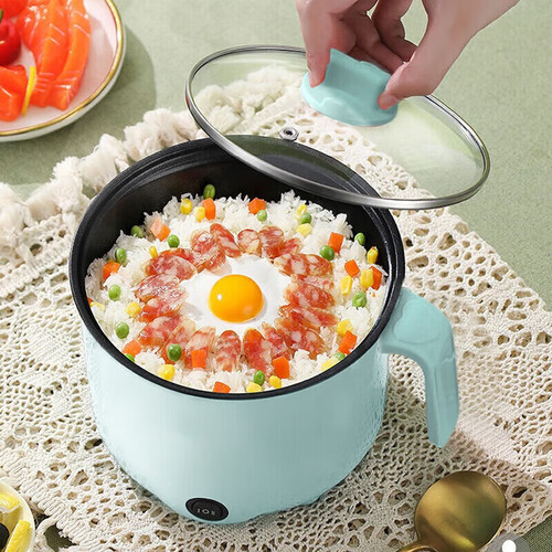 全自动蒸煮一体小电煮锅宿舍学生锅家用电炒锅电饭煲电热火锅(不含蒸笼) 【蓝色】电煮锅不锈钢内胆